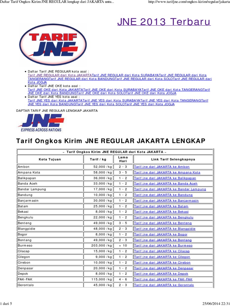 Tarif Ongkos Kirim Jne Jakarta Lengkap