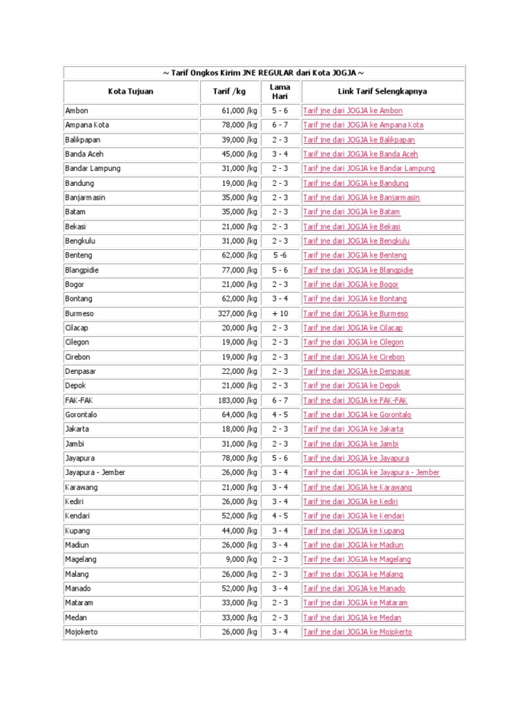Tarif Ongkos Kirim Jne Regular Dari Kota Jogja